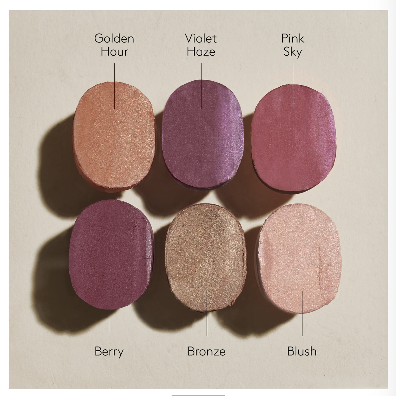 Buildable lip & cheek color available in 6 shades: